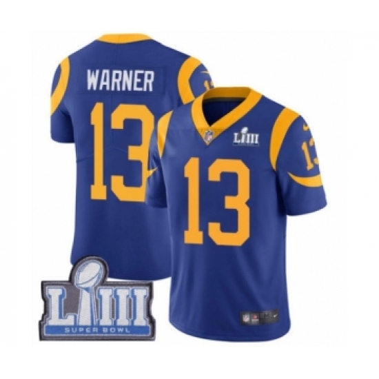Men's Nike Los Angeles Rams #13 Kurt Warner Royal Blue Alternate Vapor Untouchable Limited Player Super Bowl LIII Bound NFL Jersey