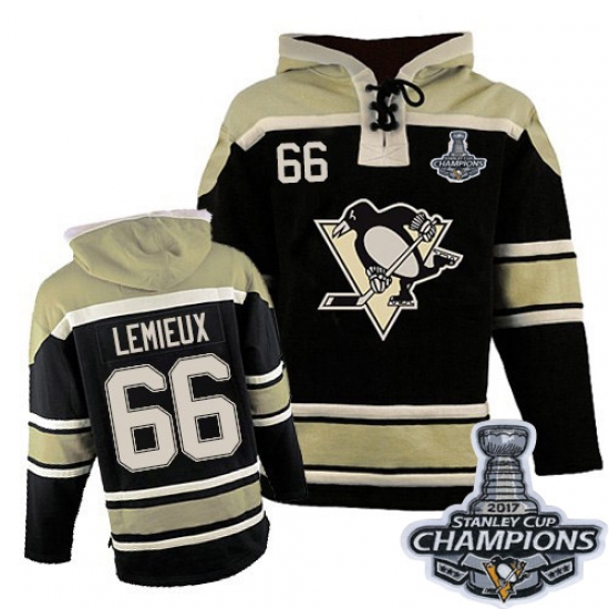 Home>NHL>Pittsburgh Penguins>Mario Lemieux>Youth Old Time Hockey Pittsburgh Penguins #66 Mario Lemieux Authentic Black Sawyer Hooded Sweatshirt 2017 Stanley Cup Champions