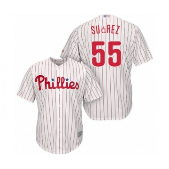 >Youth Philadelphia Phillies #55 Ranger Suarez Authentic White Red Strip Home Cool Base Baseball Player Jersey