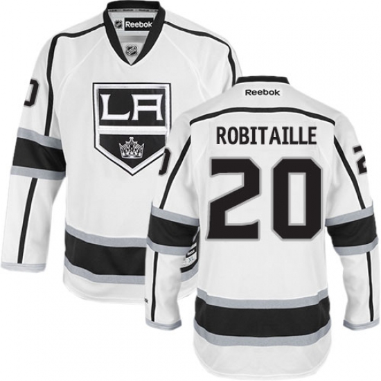 Home>NHL>Los Angeles Kings>Luc Robitaille>Youth Reebok Los Angeles Kings #20 Luc Robitaille Authentic White Away NHL Jersey