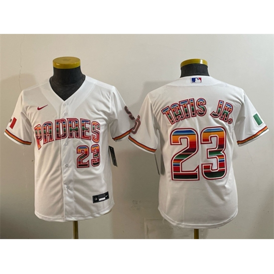 >Youth San Diego Padres #23 Fernando Tatis Jr. White Mexico Cool Base Stitched Baseball Jersey