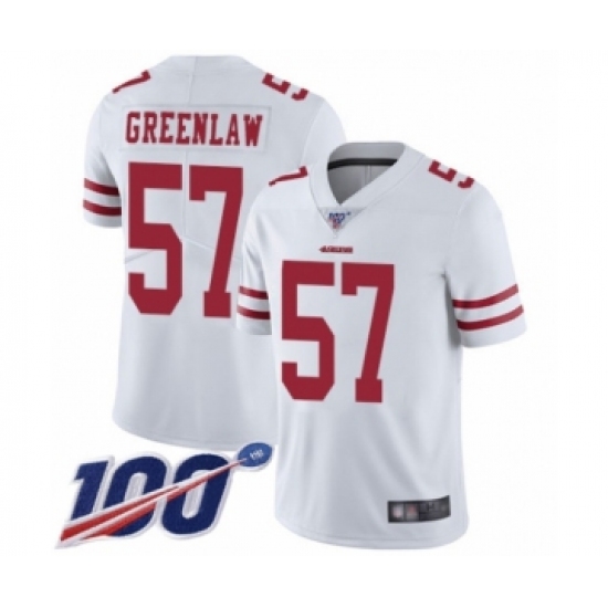 >Youth San Francisco 49ers #57 Dre Greenlaw White Vapor Untouchable Limited Player 100th Season Football Jersey