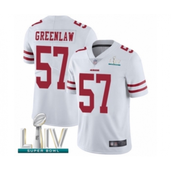 >Youth San Francisco 49ers #57 Dre Greenlaw White Vapor Untouchable Limited Player Super Bowl LIV Bound Football Jersey