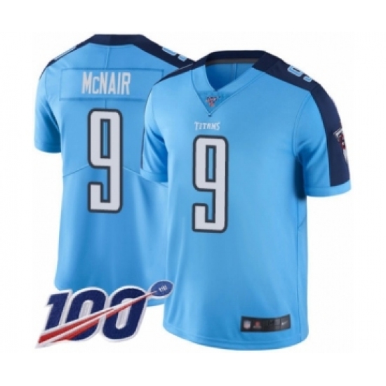 >Youth Tennessee Titans #9 Steve McNair Limited Light Blue Rush Vapor Untouchable 100th Season Football Jersey
