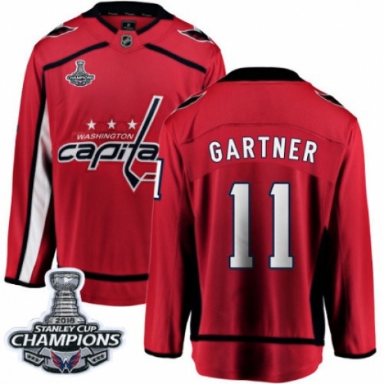 >Youth Washington Capitals #11 Mike Gartner Fanatics Branded Red Home Breakaway 2018 Stanley Cup Final Champions NHL Jersey
