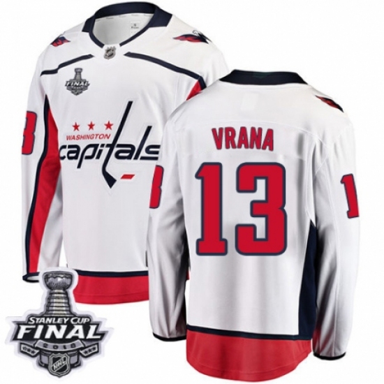 Youth Washington Capitals #13 Jakub Vrana Fanatics Branded White Away Breakaway 2018 Stanley Cup Final NHL Jersey