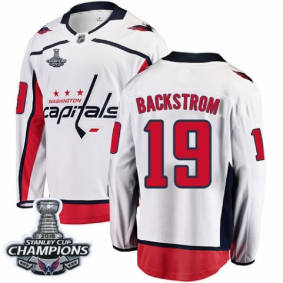 Youth Washington Capitals #19 Nicklas Backstrom Fanatics Branded White Away Breakaway 2018 Stanley Cup Final Champions NHL Jersey