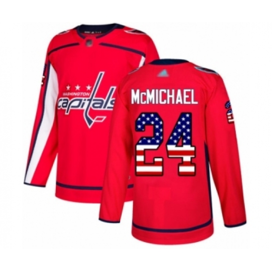>Youth Washington Capitals #24 Connor McMichael Authentic Red USA Flag Fashion Hockey Jersey
