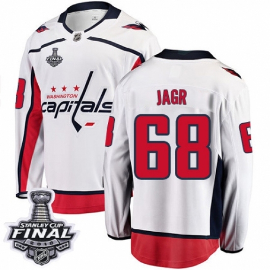 Youth Washington Capitals #68 Jaromir Jagr Fanatics Branded White Away Breakaway 2018 Stanley Cup Final NHL Jersey