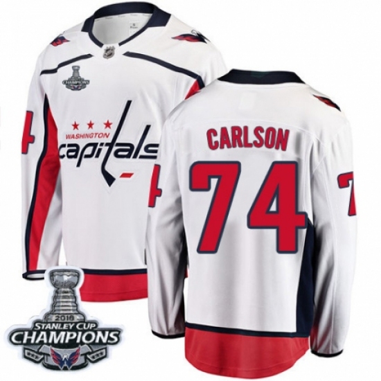 Youth Washington Capitals #74 John Carlson Fanatics Branded White Away Breakaway 2018 Stanley Cup Final Champions NHL Jersey