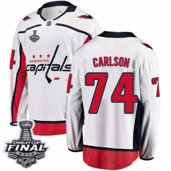 Women's Washington Capitals #74 John Carlson Fanatics Branded White Away Breakaway 2018 Stanley Cup Final Champions NHL Jersey