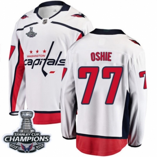 Men's Washington Capitals #77 T.J. Oshie Fanatics Branded White Away Breakaway 2018 Stanley Cup Final NHL Jersey