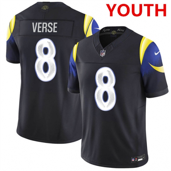 Youth los angeles rams #8 jared verse midnight blue 2025 f.u.s.e. “rivalries” vapor limited football stitched jersey