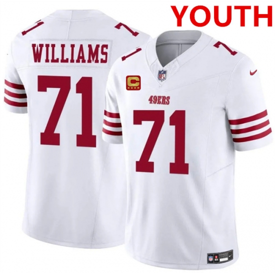 >Youth san francisco 49ers #71 trent williams white 2025 f.u.s.e. with 4-star c vapor untouchable limited stitched football jersey